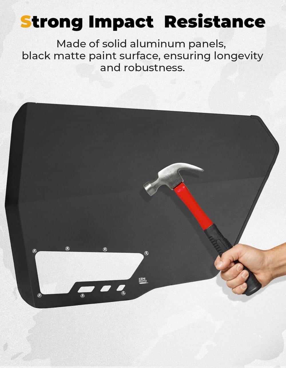 The aluminum plates of aluminum half door are designed to resist impacts and corrosion, safeguarding both drivers and passengers from potential dangers posed by rocks and branches.