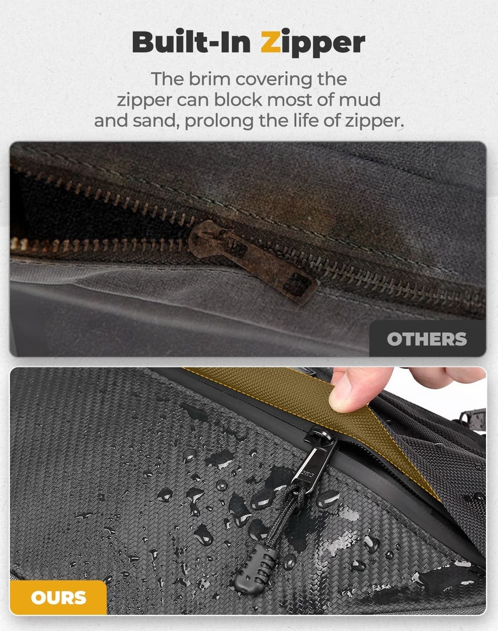 The side door bags come with PVC water-resistant zippers covered by a layer of cloth to prevent dust and mud buildup. These upgraded zippers ensure the interior stays dry and clean.
