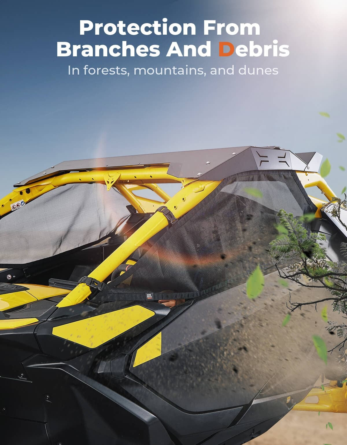 Ultimate Protection: The Can-Am Maverick R window nets effectively block flying debris, such as sand and rocks, from entering the vehicle. They ensure a safe and comfortable ride by maintaining excellent ventilation even in harsh weather conditions.