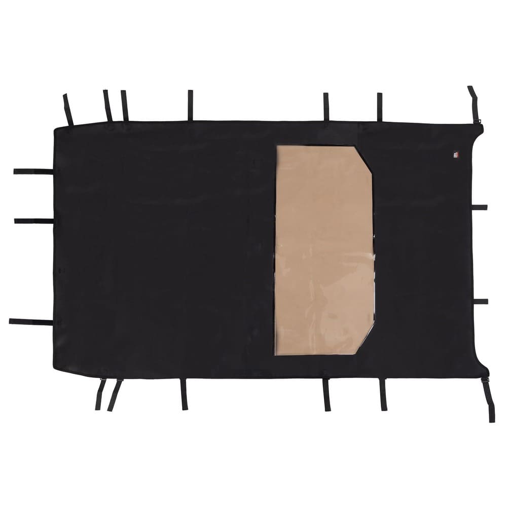 This UTV soft top features a brown PVC transparent window that provides shade and blocks 99.5% of ultraviolet rays and 53.7% of infrared rays.