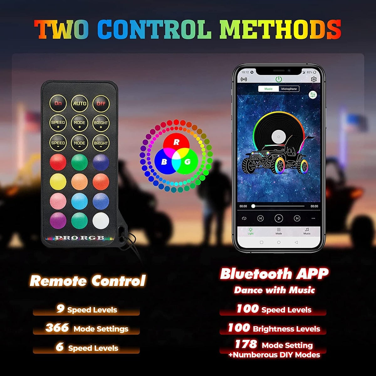 Kemimoto Can-Am Commander 4FT LED RGB Whip Lights & Storage Bag