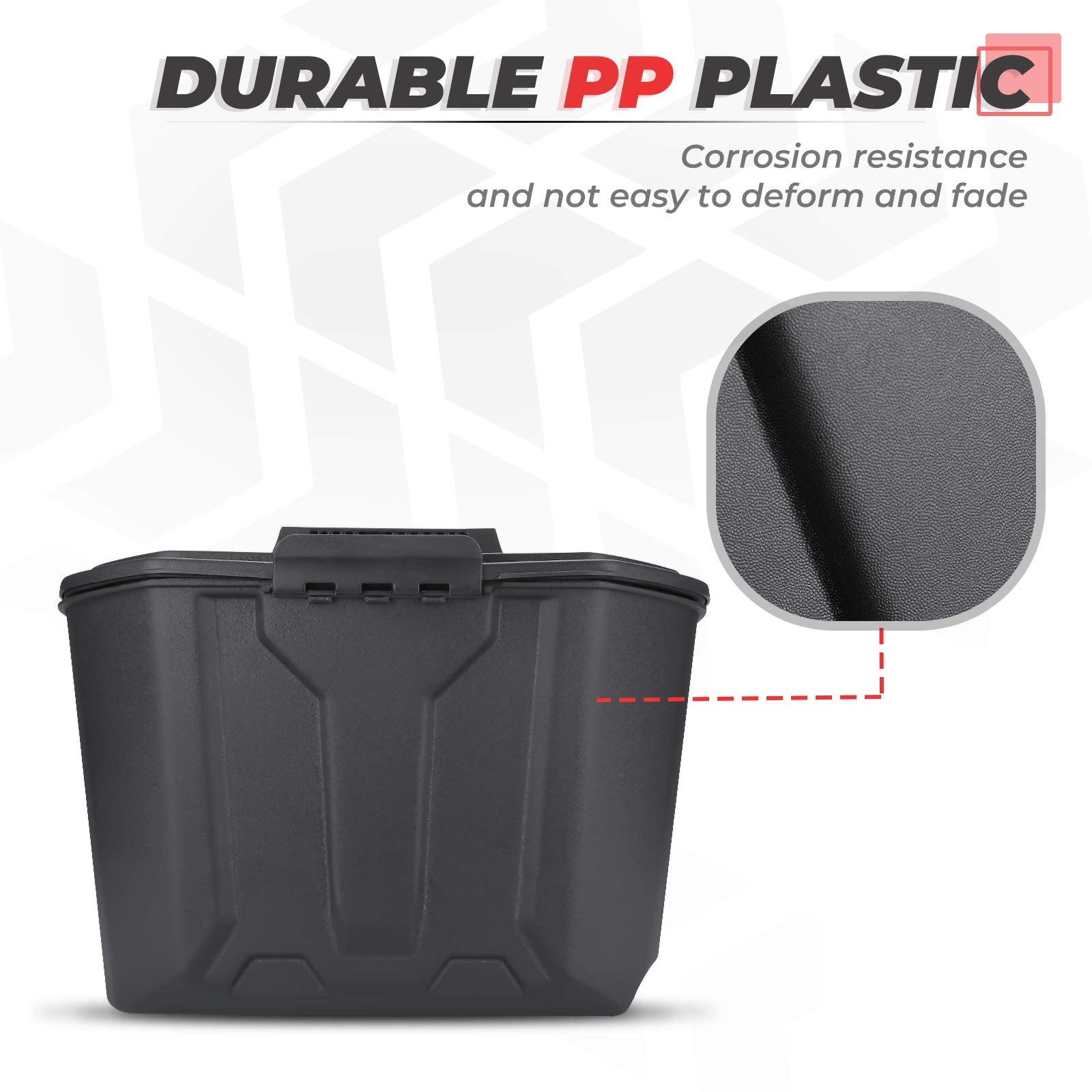 The Removable Storage Box has a lid with a rubber gasket so there is almost no crack while closing it, reducing noise efficiently when you driving on the rough road.