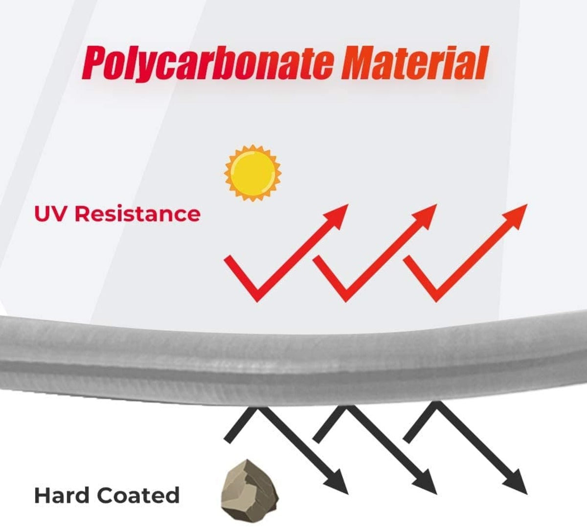 The Rear Windshield is made from polycarbonate, which is highly durable and long-lasting so there is no worry about cracking or breakage during riding.