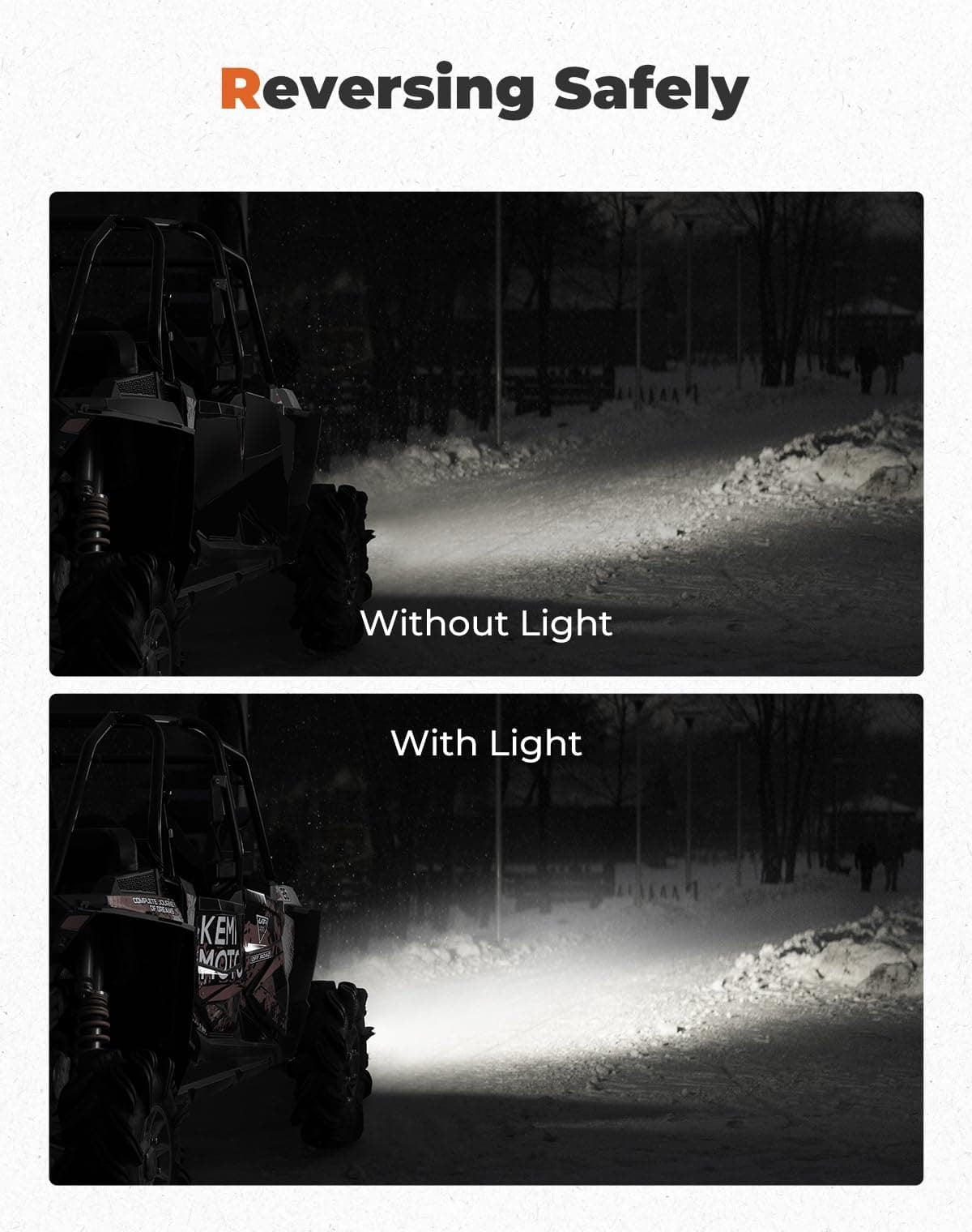 KEMIMOTO Can-Am Defender headlights have multiple functions such as daytime running lights, turn signals, and low beam and high beam lights, fully meeting driving needs.