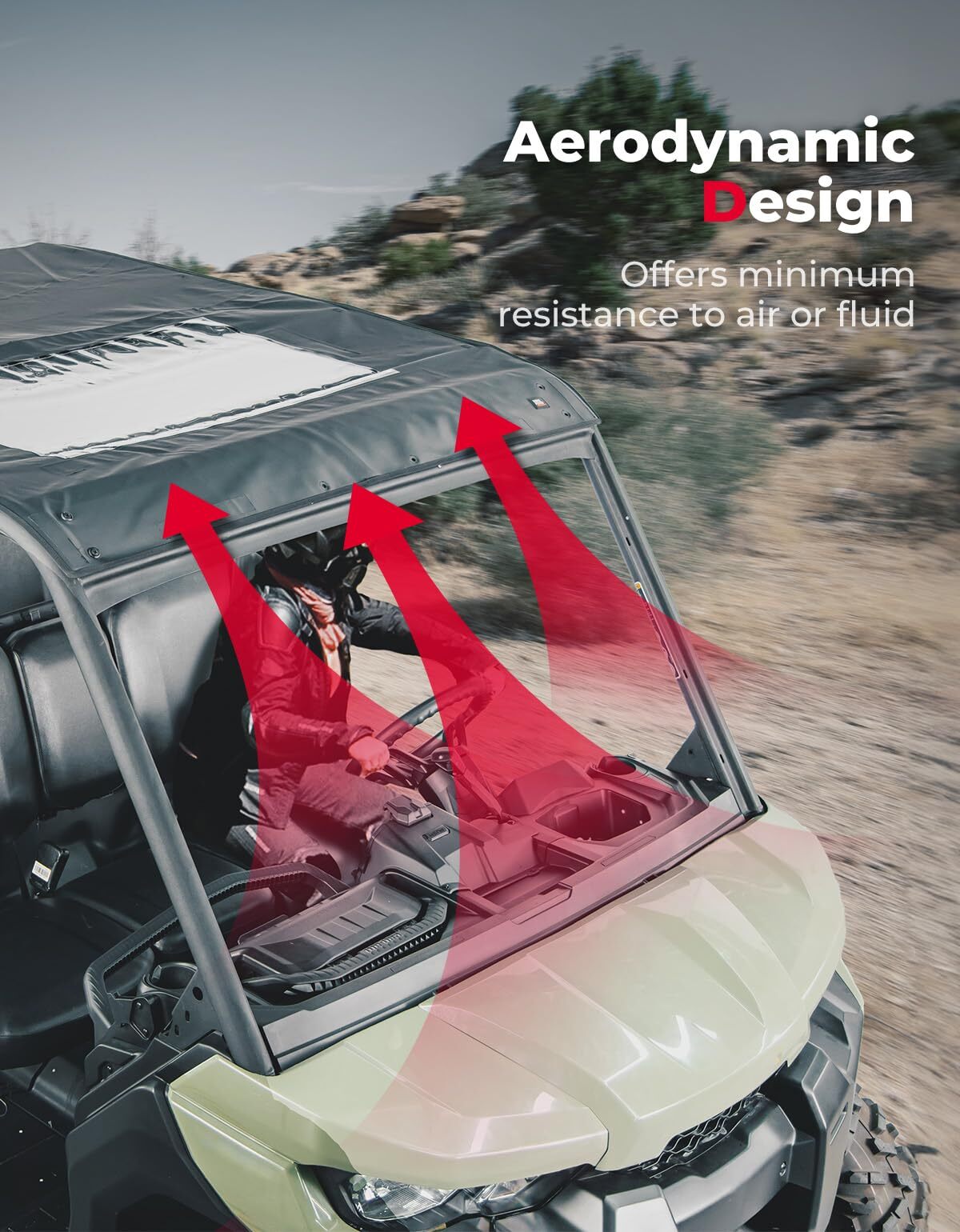 The front of the roof is designed with a clear PVC sunroof that can be opened by rolling up the black sunroof cover, allowing you to fully enjoy the scenery around you and enjoy a wider view. The sunshade feature also helps to reduce glare and improve visibility during bright, sunny days.