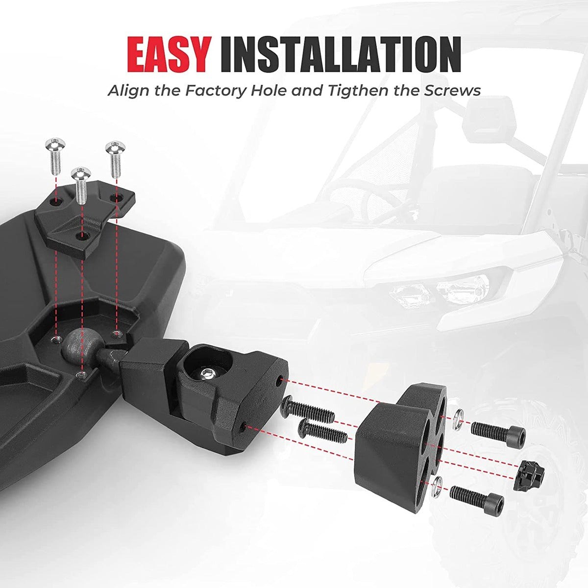 Defender UTV mirrors are made of heavy-duty aluminum construction owned the specification of rugged durability, wear-resistant, corrosion-resistant, which is great for all weather conditions.