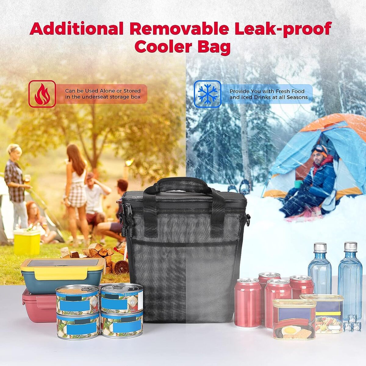 Upgraded Defender HD8 storage bin offers 8L under-seat space for carrying small items and a soft-sided cooler bag, perfect for pool days, camping, travel, picnics, or road trips.