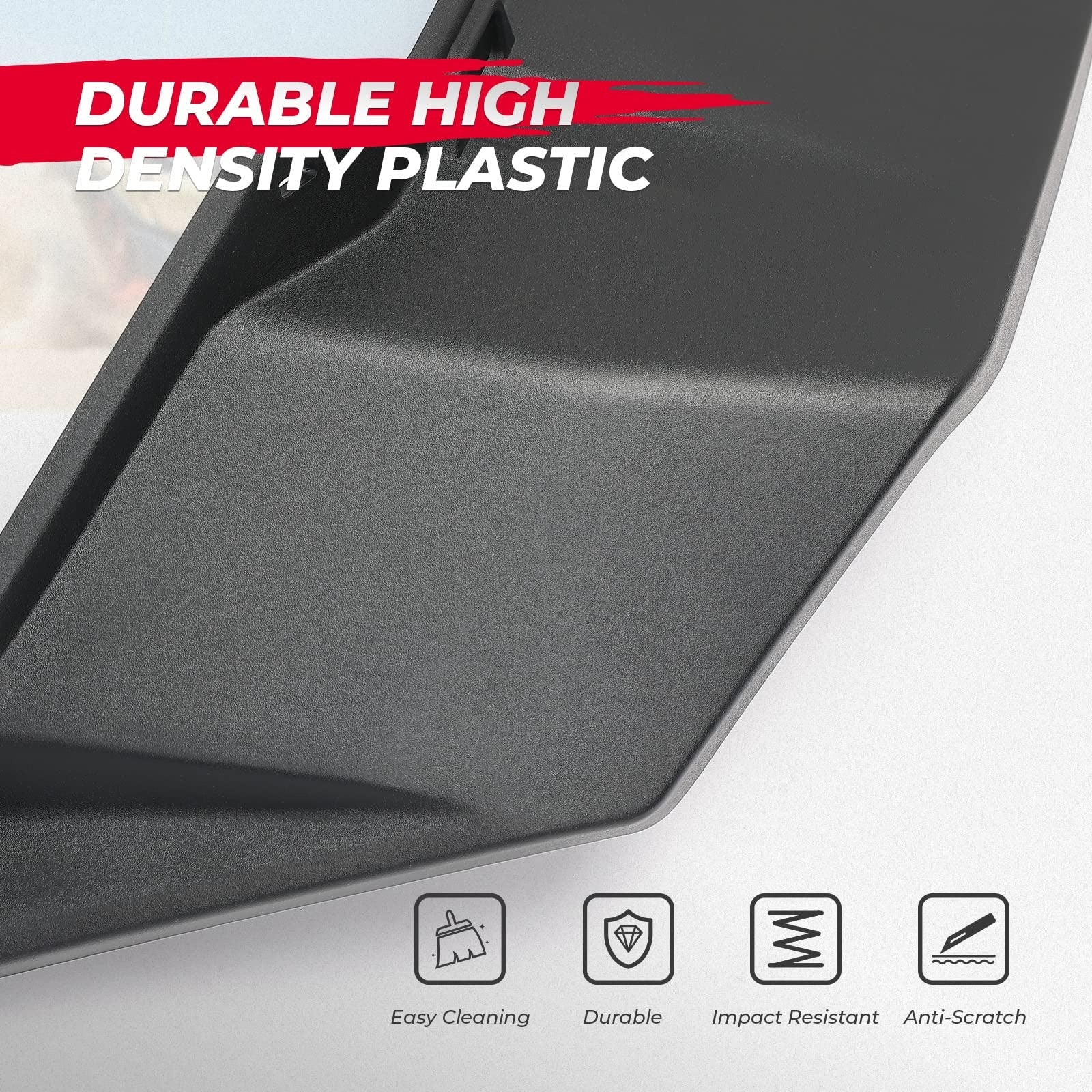 The width of KEMIMOTO x3 mud flares is upgraded from 3.9 in to 8.9 in, the wider it is, the stronger fendering it provides. After x3 extended fender flares are installed, they will prevent mud/ sand/ water ect. from getting into the interior cab over the wheels, which will keep your vehicle clean and improve driving safety.