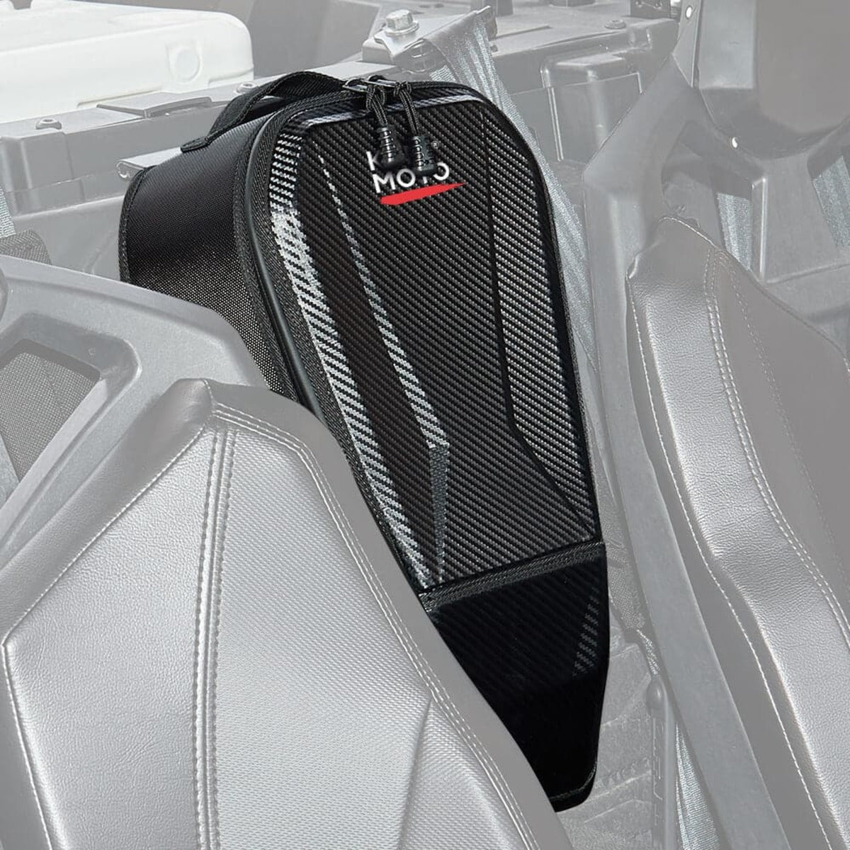 The large Maverick X3 center bag between seats is made of 1680D coated Nylon Fabric with the feature of durability and water resistance Then the maverick X3 bag won't get wet easily and keep the inner bag with your things dry and clean.