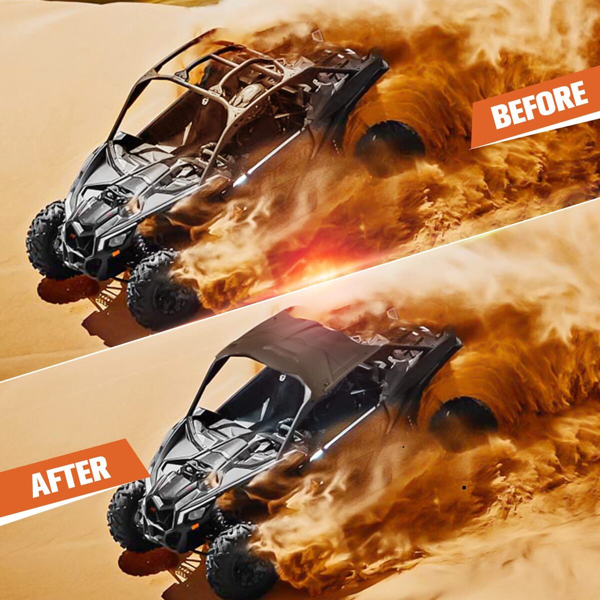Kemimoto designed this flat roof according to Can-Am Maverick X3, which can perfectly match your Can-Am vehicle, which will make it stand out from the crowd. Walkthrough the trails, keep the sun away from your face, and look different and more fun under your new sport roof and shredded cage-like UTV exterior.