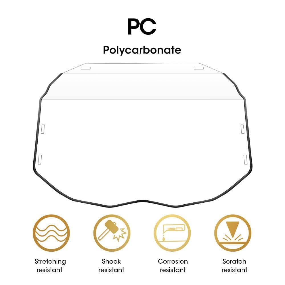 Kemimoto X3 windshield is made of 1/4 inches thick polycarbonate which is shatter-resistant, shockproof, and much stronger than glass, it can be applied under any road condition and help you keep clear view. Both sides of the X3 front windshield are hard coated to get better scratch resistance, and the x3 full windshield will be checked and wrapped with removable blue protective film before shipped out.