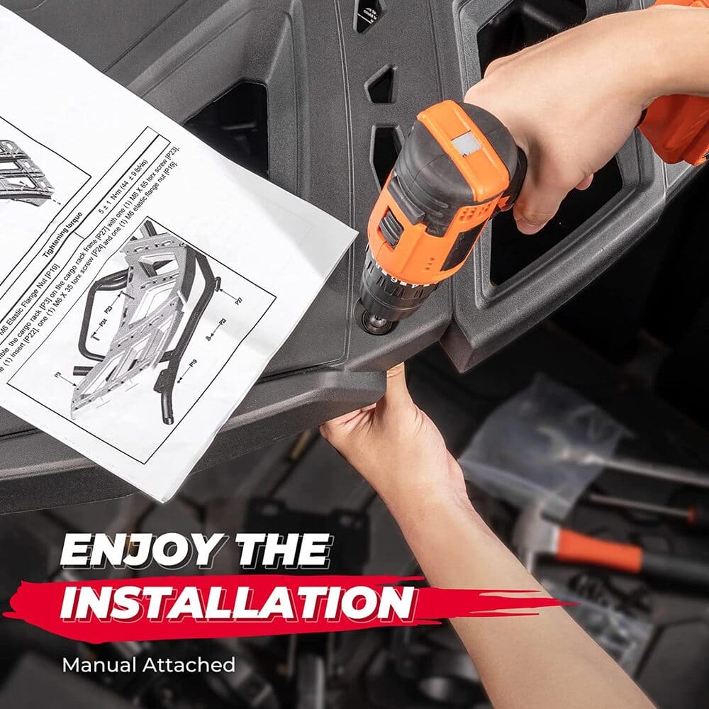 Kemimoto X3 Rear Cargo Rack can be installed firmly, even when you're driving on the bumpy road, it also can provide reliable protection for your luggage/ cargo/ tools or other things on your off-roading journey.