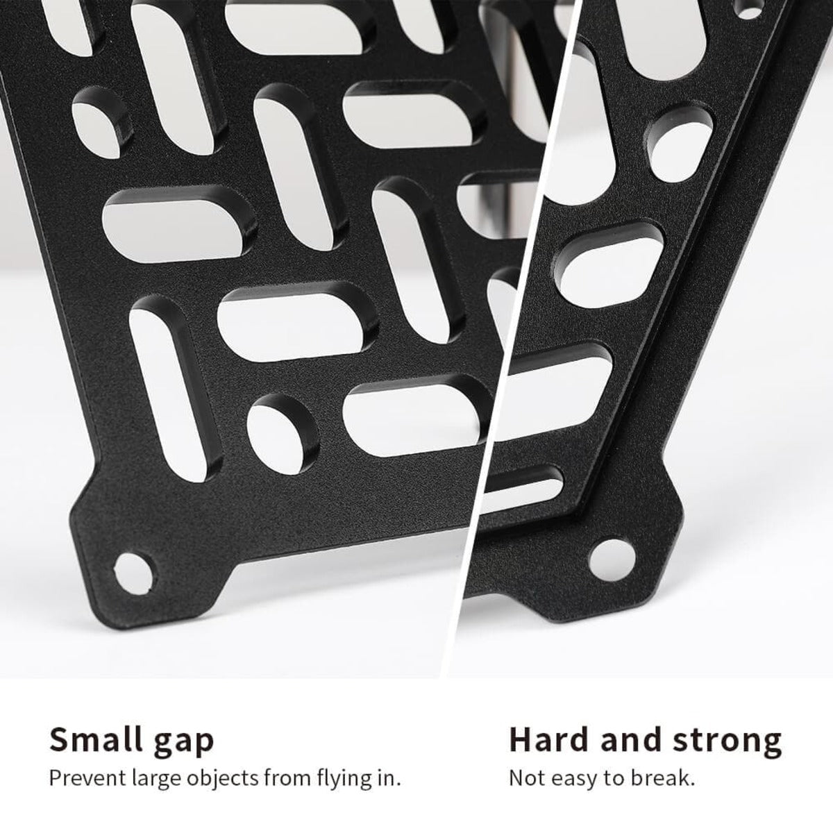With a small gap of the separation grid, the x3 noise reduction intake kit can prevent large objects from flying in. The thickness of the separation grid is 4mm, and the thickness of the baffle is 3mm. It is very hard and strong, not easy to break.