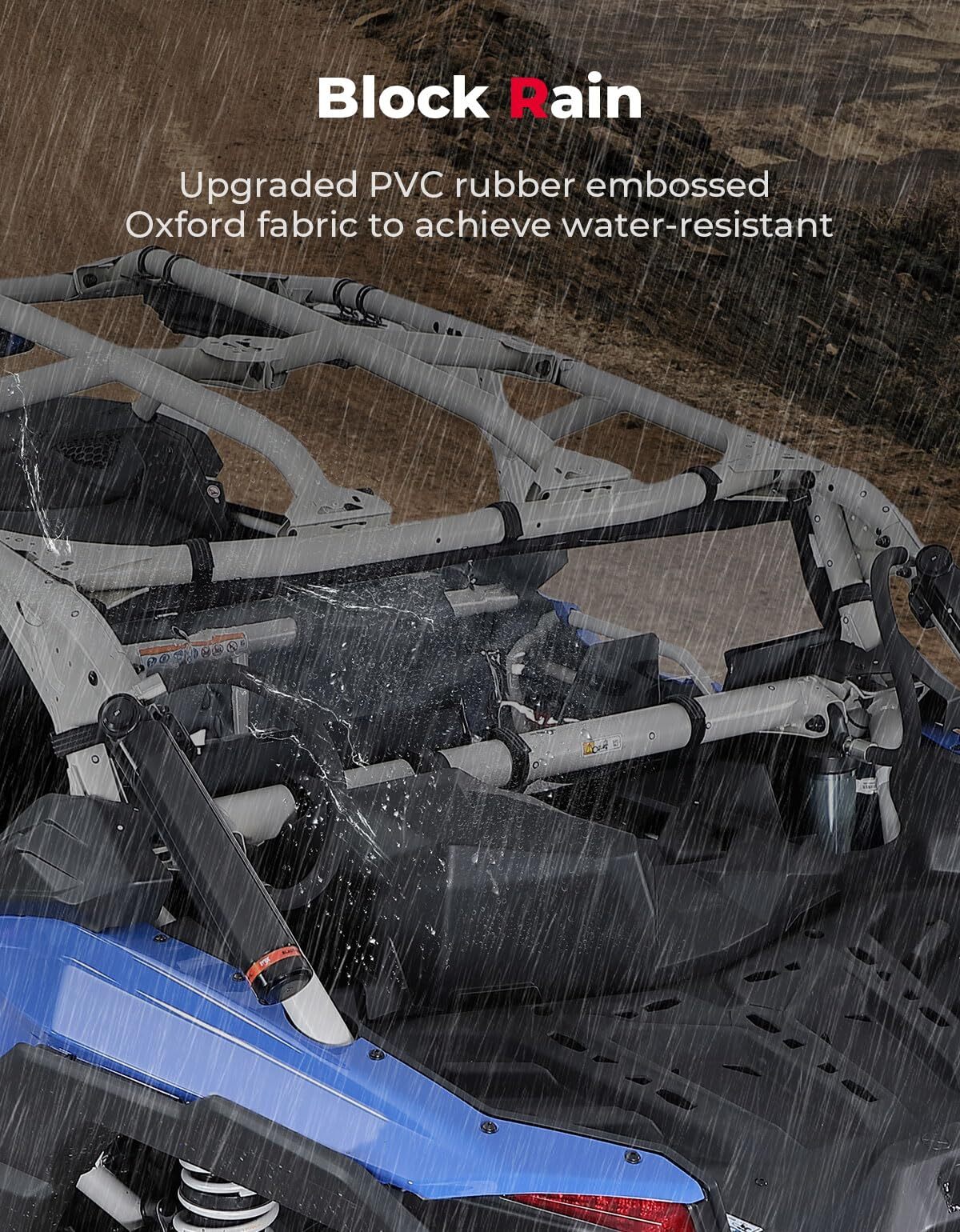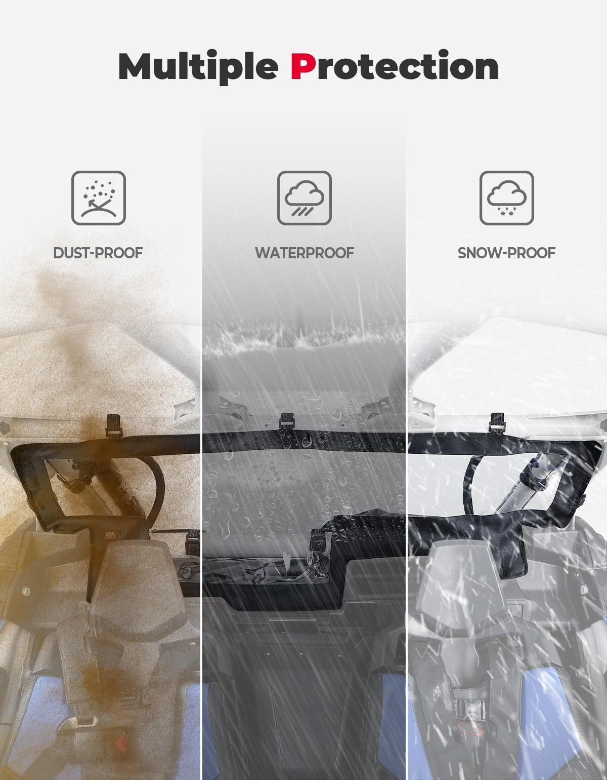 Premium Quality: The x3 windshield is made of custom composite fabric, which has better waterproof performance, abrasion resistance, and UV resistance than ordinary Oxford fabric. The center of x3 rear windshield is made of PVC high-definition transparent film, which provides a clear view and easy to clean.