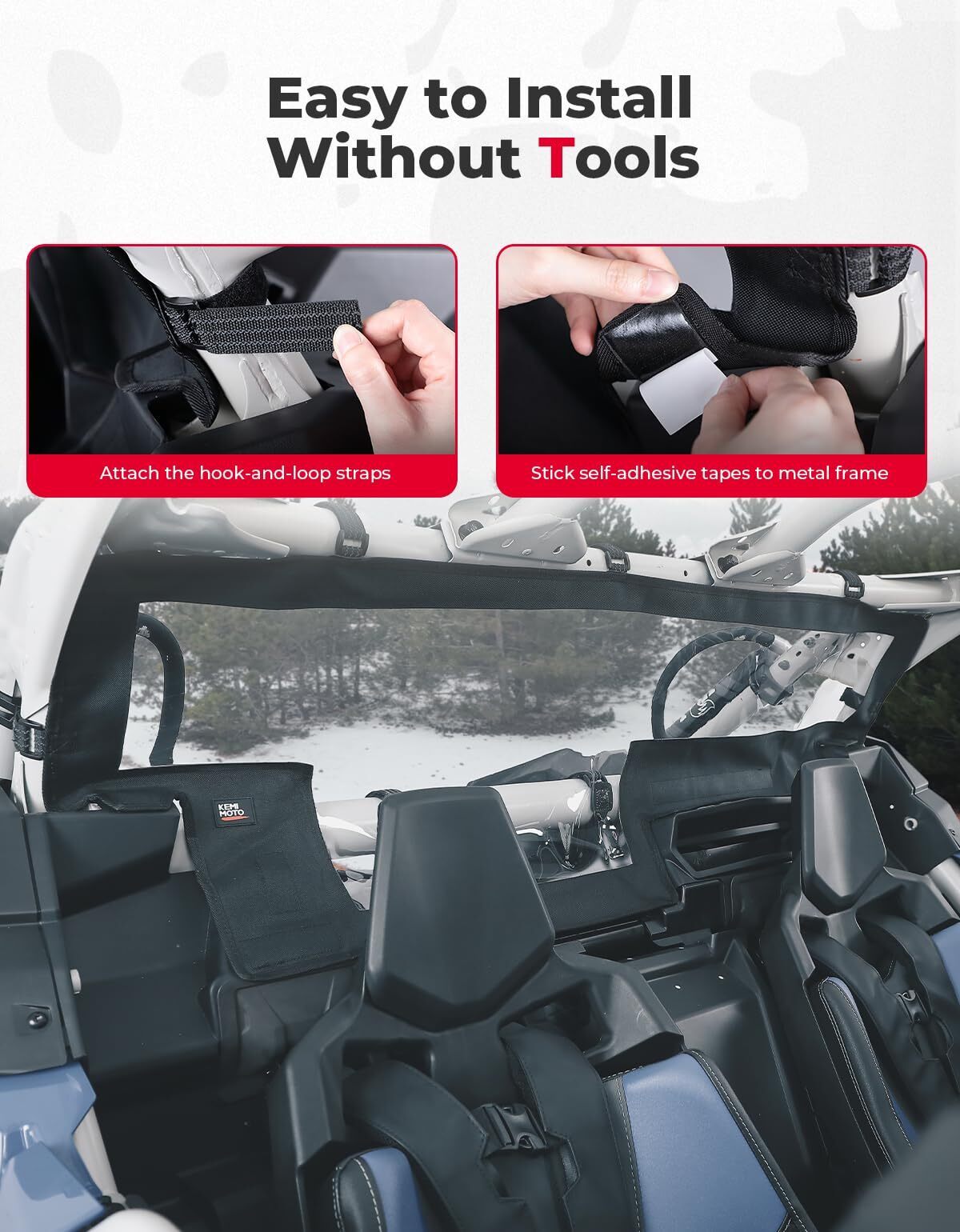 Easy to Install: No need to drill and no tools required to install, which makes the installation piece of cake. You can quickly and easily attach the x3 rear window to your UTV using the non-slip strips, making the windshield a great addition to your UTV accessories