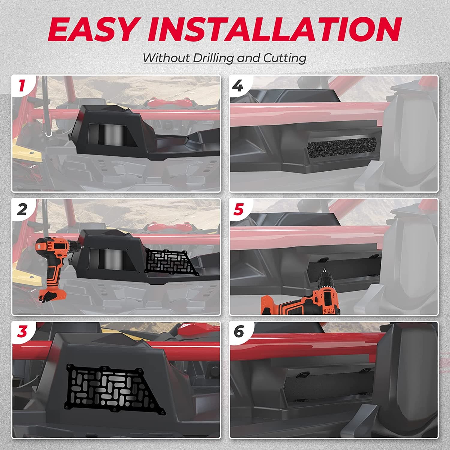 Driving an excellent X3 machine, but the noise inside the cab from the air intake bothers you all the way? Here Can-Am Maverick X3 Noise Reduction Kit can help you fix this problem. With this kit, noise is greatly reduced and brings you a wonderful driving experience.