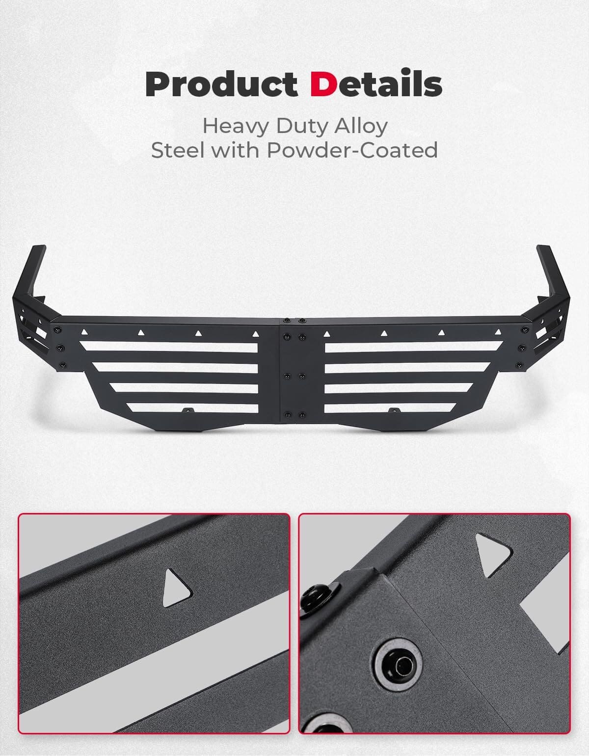 The bed enclosure is made of heavy duty metal, which is wear-resistant, corrosion-resistant, and durable. The black Kemimoto rear cargo tailgate coated with a UV resistant black powder coated, can stand the test of time, mud, weather, and any type of ride you are on.
