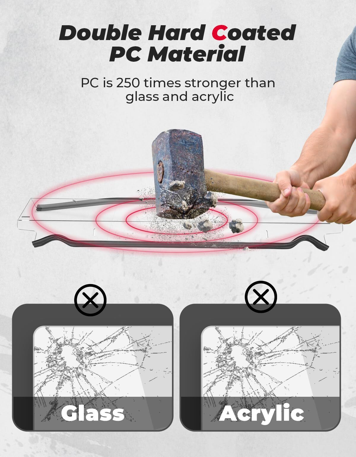 KEMIMOTO x3 back windshield is made of 1/4 inch thick polycarbonate, which is 250 times stronger than glass, no more worrying about cracking or breaking down during driving. With a UV-resistant layer, x3 back windshield is more antioxidant.