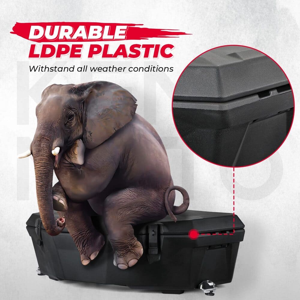 kemimoto X3 cargo box is made of strong construction and premium-quality material. It has a strong bearing capacity which is not easy to break or crack. Up to 120KG bearing capacity allows you to put some heavy items above the X3 storage. Furthermore, a tight lip seal keeps water out and keeps your clothes, food, electronic or other items dry and clean when you are driving in the deep mud and rainy days.