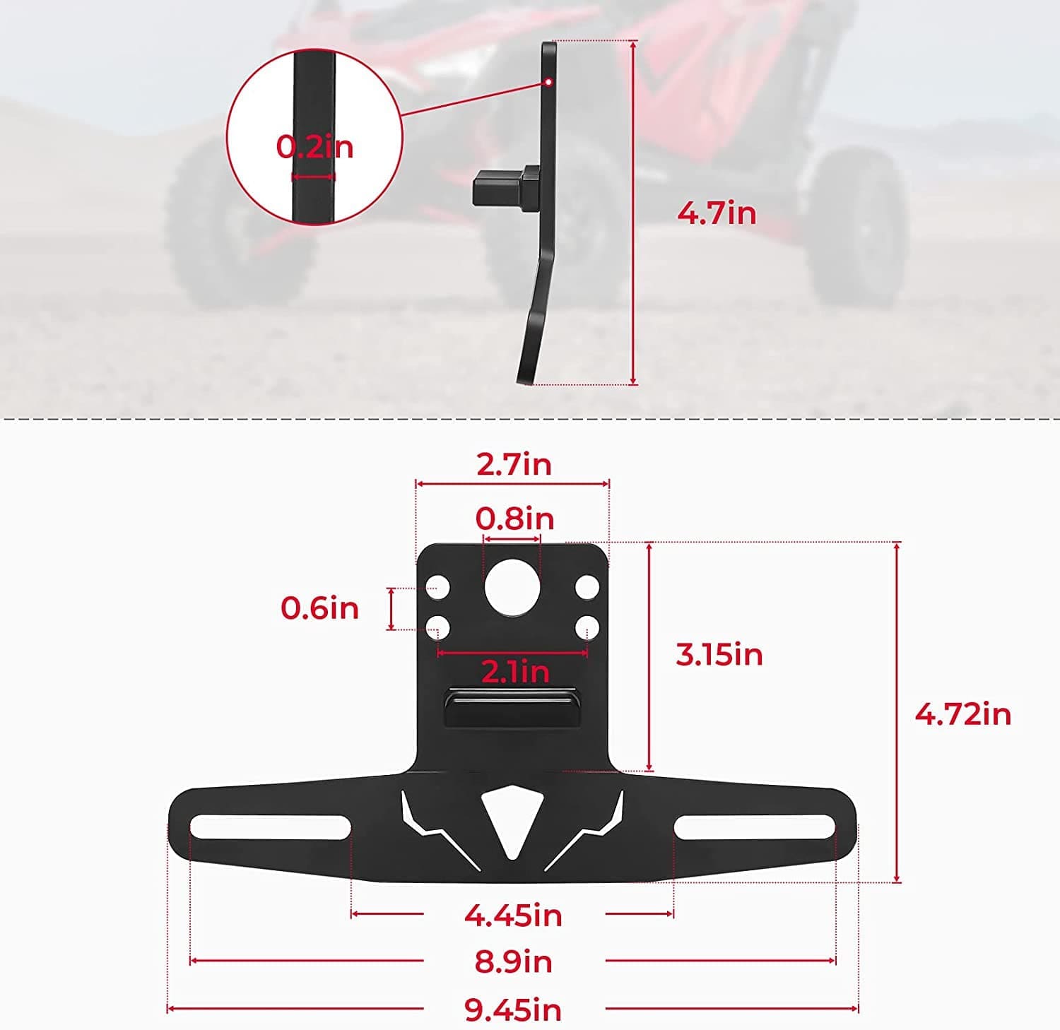 UTV license plate holder is well built, smooth without defects, and shows strong metal sense due to its fashionable and unique appearance design. Note: this license plate frame is standard car plate size, NOT motorcycle plate size.