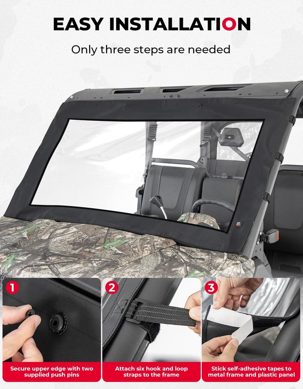 With its simple design and included hardware, installing our front soft windshield is a breeze. It is more lightweight than polycarbonate material and can be installed in just a few minutes. We also provide a very detailed installation video.