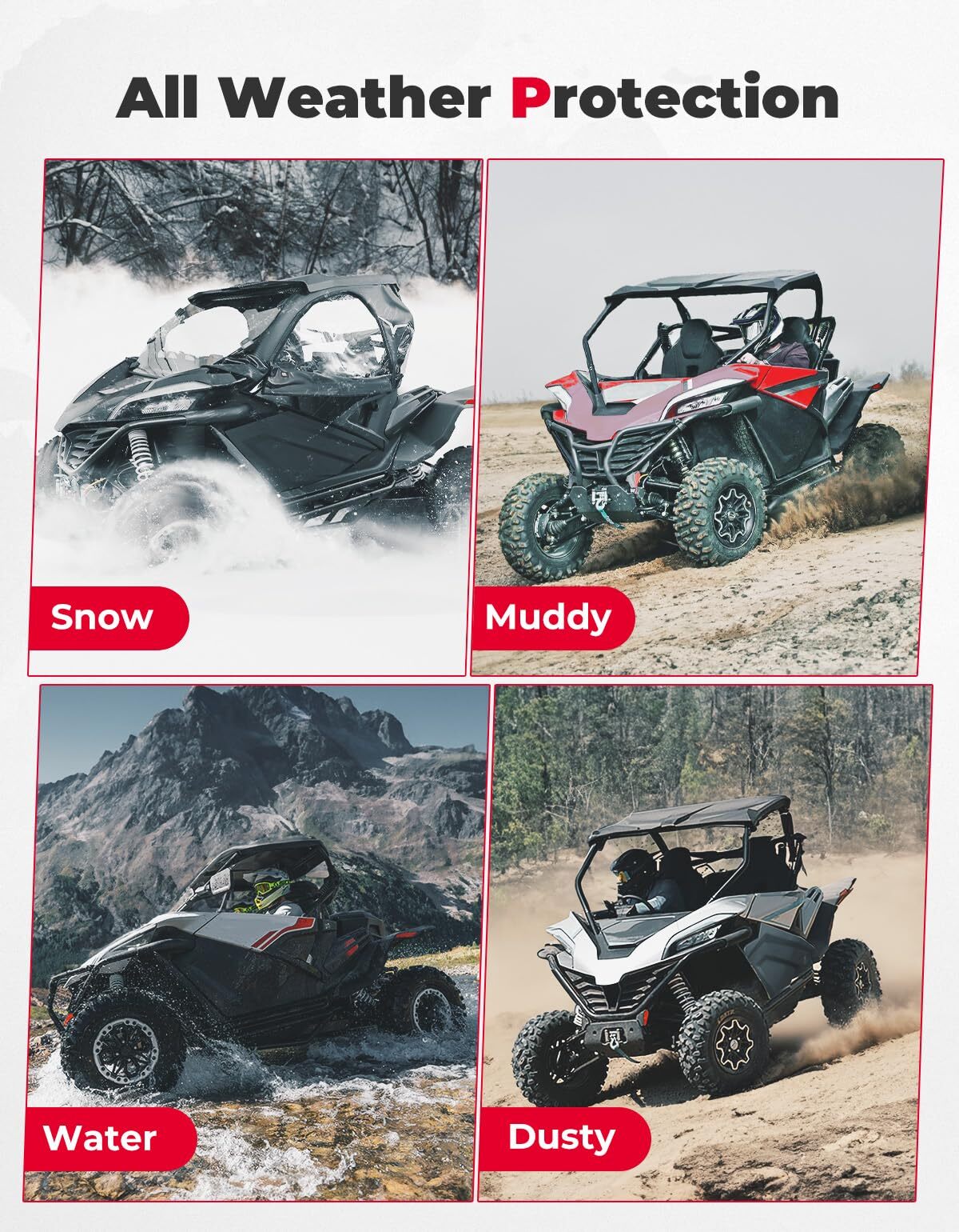 lower door panels can keep stones and other debris from flipping into the rider area so that no distraction while driving, and keeping your safety. Make your off-road riding more carefree, kemimoto lower door panels escort your off-road riding.