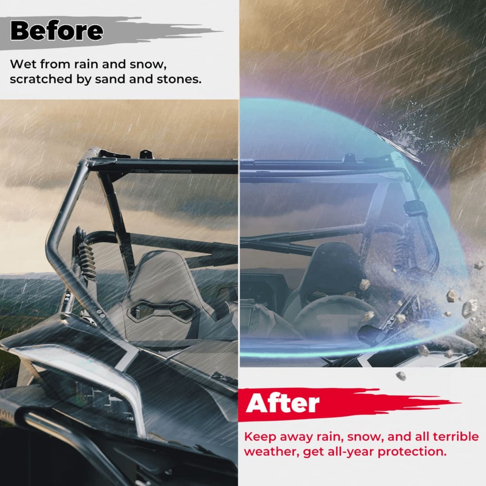 Fall and winter are coming, are you still sitting on your utv shiverings? Maybe you need a windshield to keep the cold out for you. It can prevent wind, leaves, and debris from flying directly into your face, keeping the interior of the UTV dry and tidy.