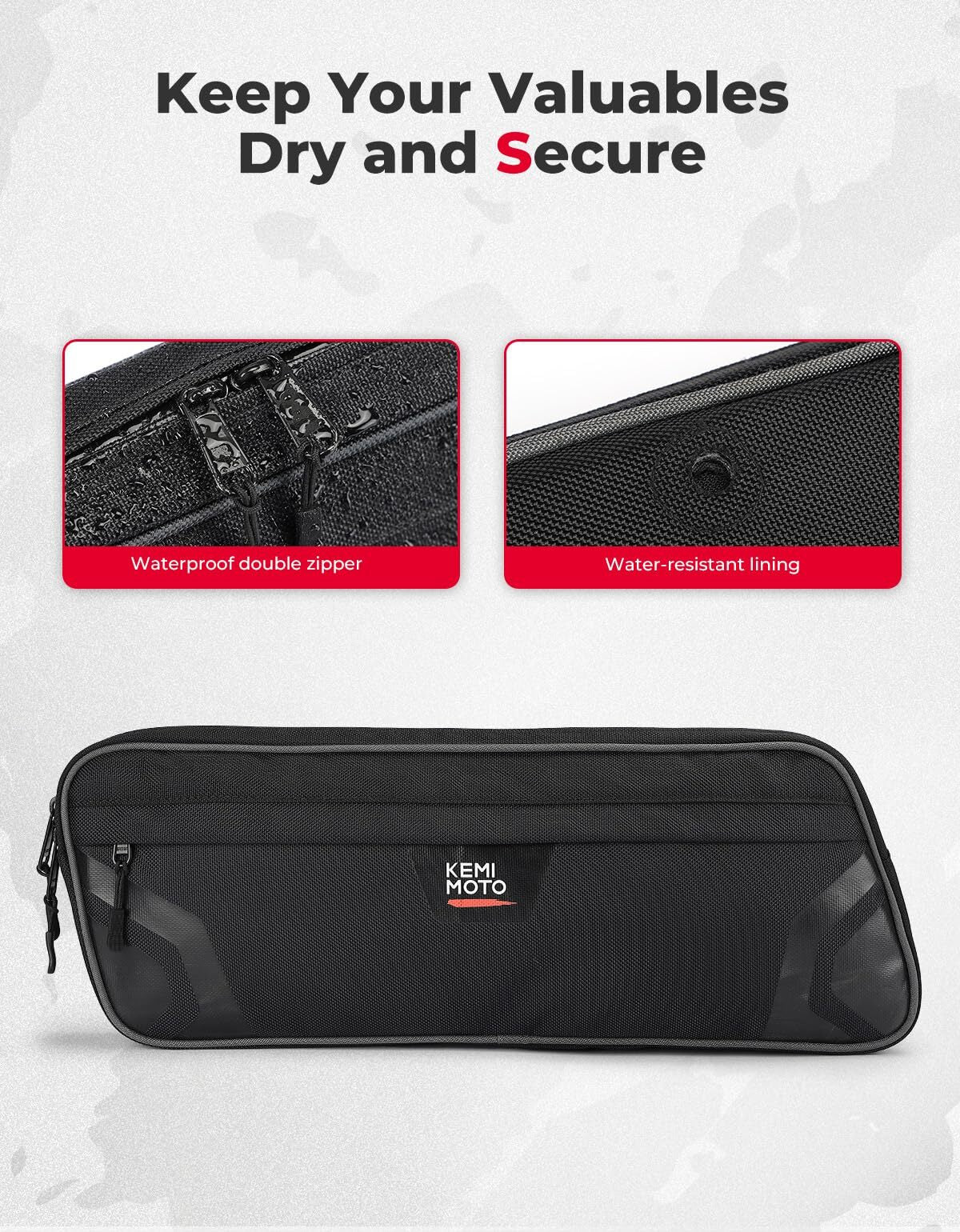 Double zippers are durable and water-resistant, with a flexible opening and covered brim to keep them clean. The door bag also has a key chain for easy access to the positioning key.