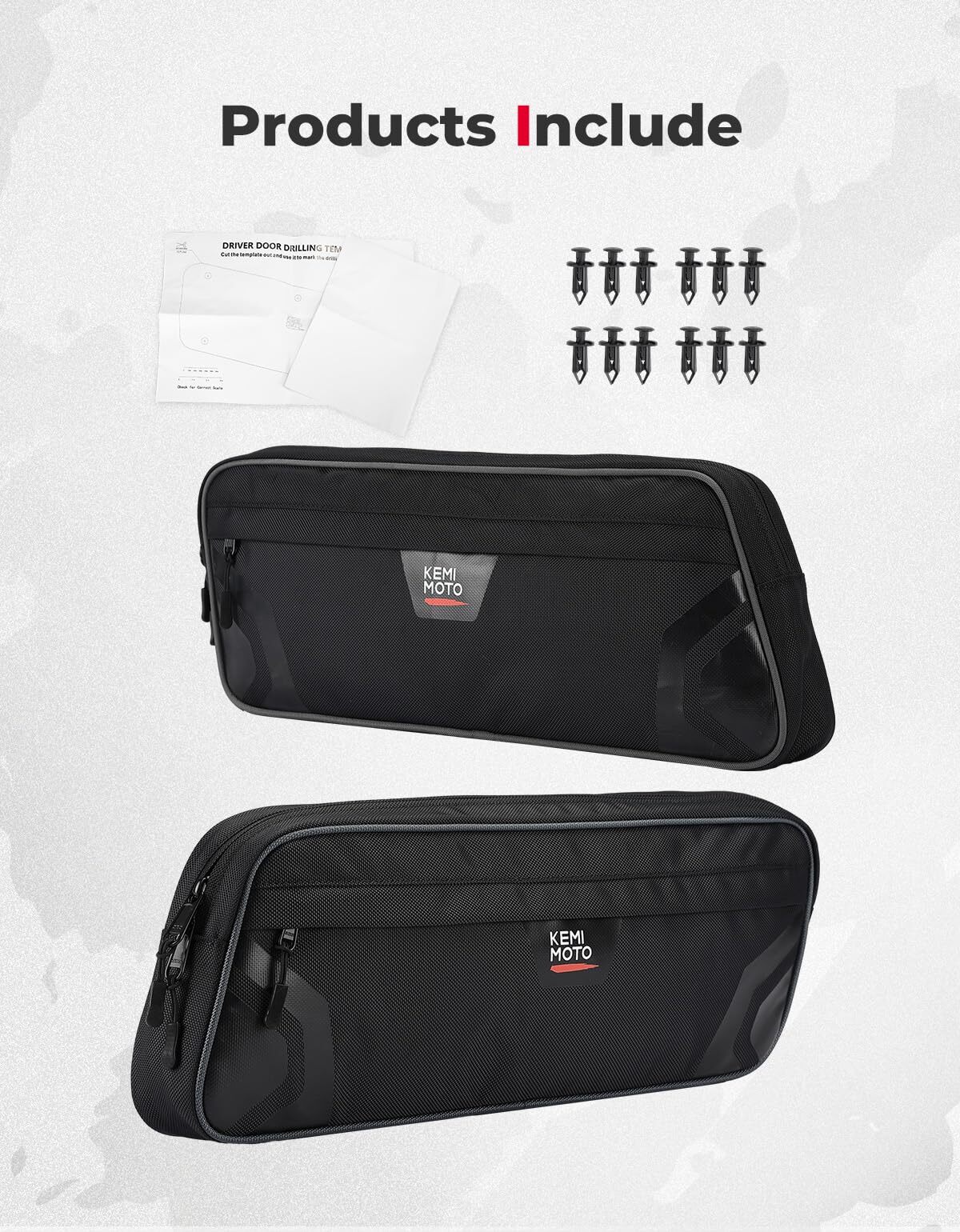 The UTV door bag is directly positioned and drilled according to the door drilling template[Note] Please check the dimensions of your SXS door before purchasing to ensure that it will fit the door bag.