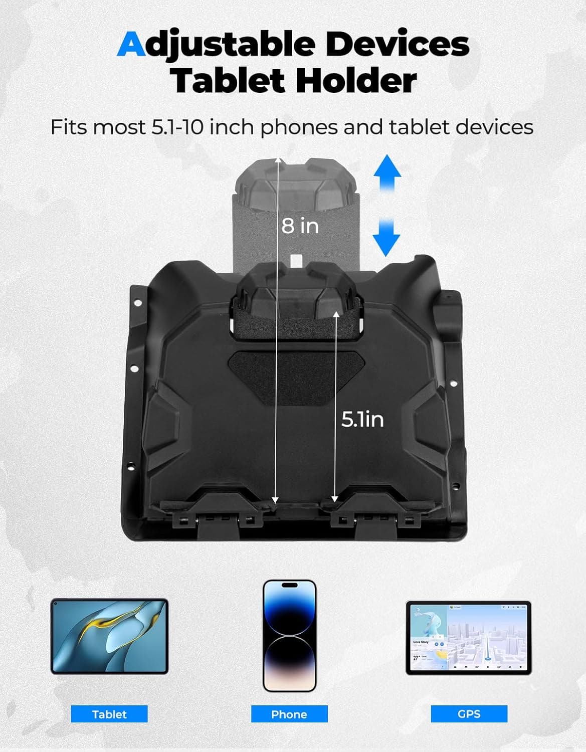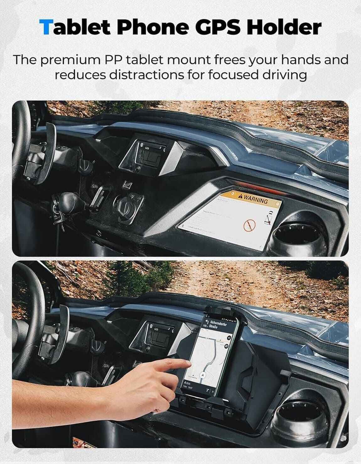 Electronic device holder made from durable PP material and utilizing 3D scanning technology to ensure an exact fit for the SXS. Protect your device while off-roading with shock-absorbing sponge pads to reduce vibrations