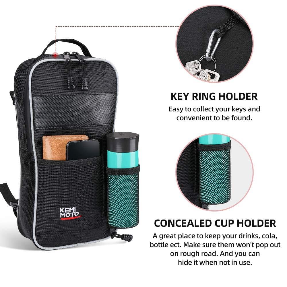 This kemimoto center bag is made of High Density Water Resistant 1680D Fabric which can last much longer than other center storage bag made of 201D,400D and 600D. It provides excellent protection against scratches, wear, tear and dust.