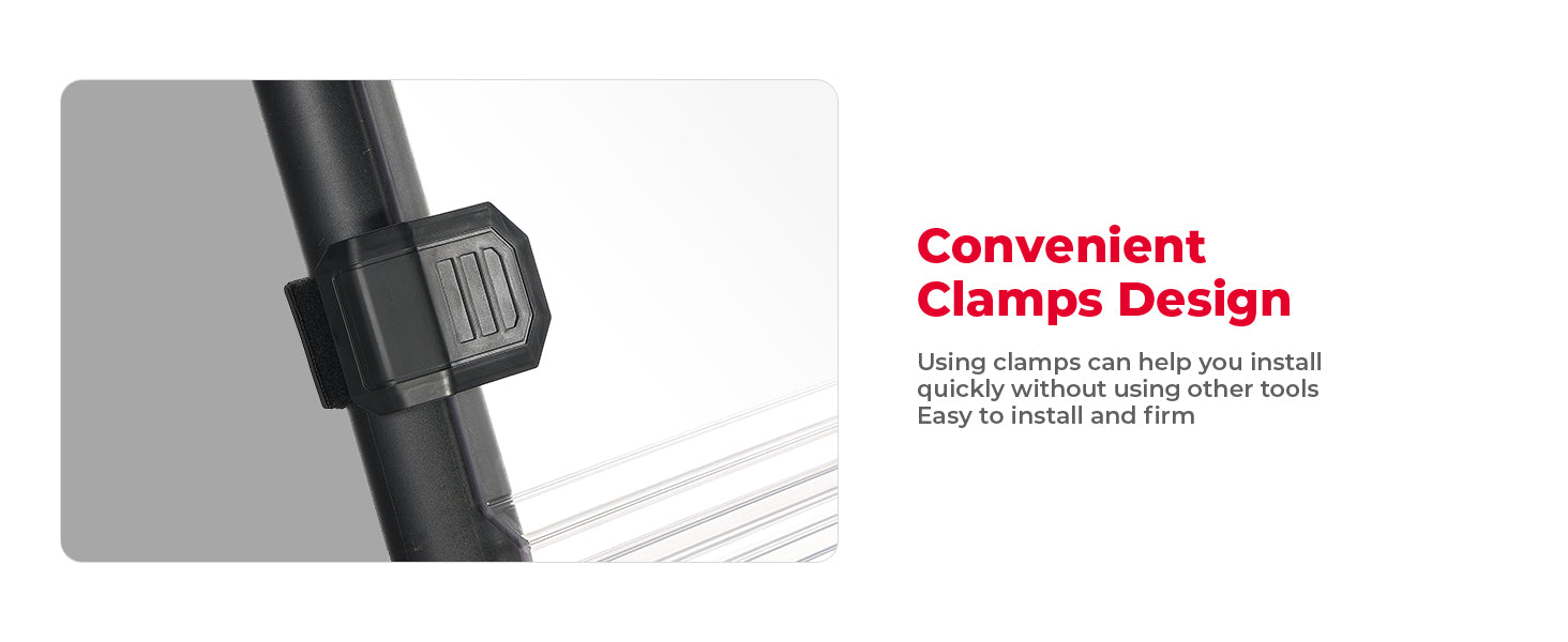 The windshield can use quick-release Velcro tube clips. Not only easy to install but also firm. It’s very easy to install or remove the windshield in minutes.
