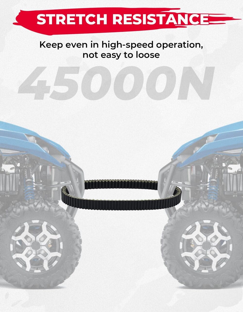 UTV drive belt compatible with Kawasaki Teryx 800 CVT belt with the accurate design of bite distance can ensure that the clutch drive belt is evenly stressed during transmission. Effectively reduce unilateral wear and prolong the service life of the drive belt.