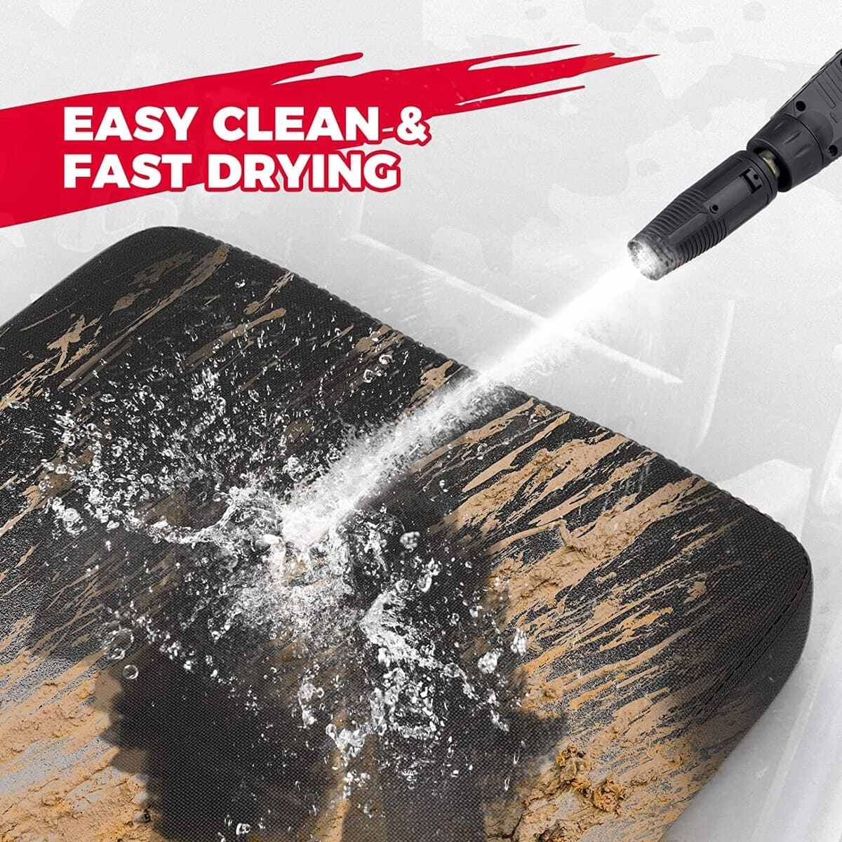 Easy to clean and fast drying. The water-resistant coating and the heavy-duty fabric are for maximum weather and abrasion protection, which can effectively protect your seat from being soiled or damaged when hunting, doing farm work or driving on muddy roads.