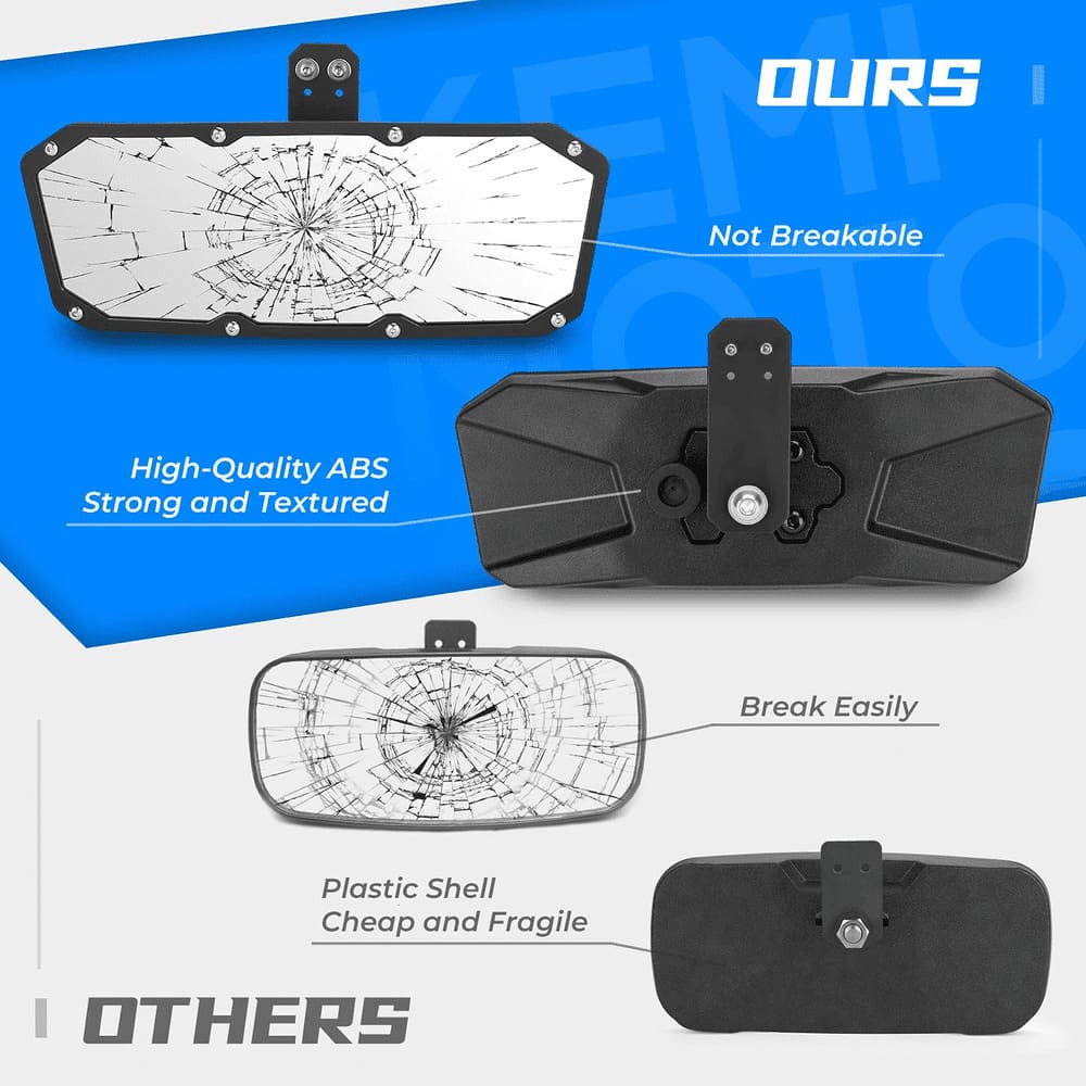 10" x 4.7" convex rearview mirror can eliminate blind spots and provide clear vision even over harsh terrain and whoops.