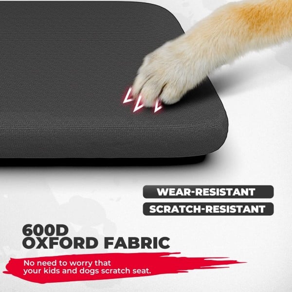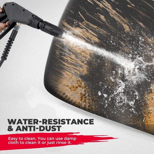 This seat cover is made of heavy-duty fabric with a water-resistant backing and exterior coating for maximum weather and abrasion protection.
