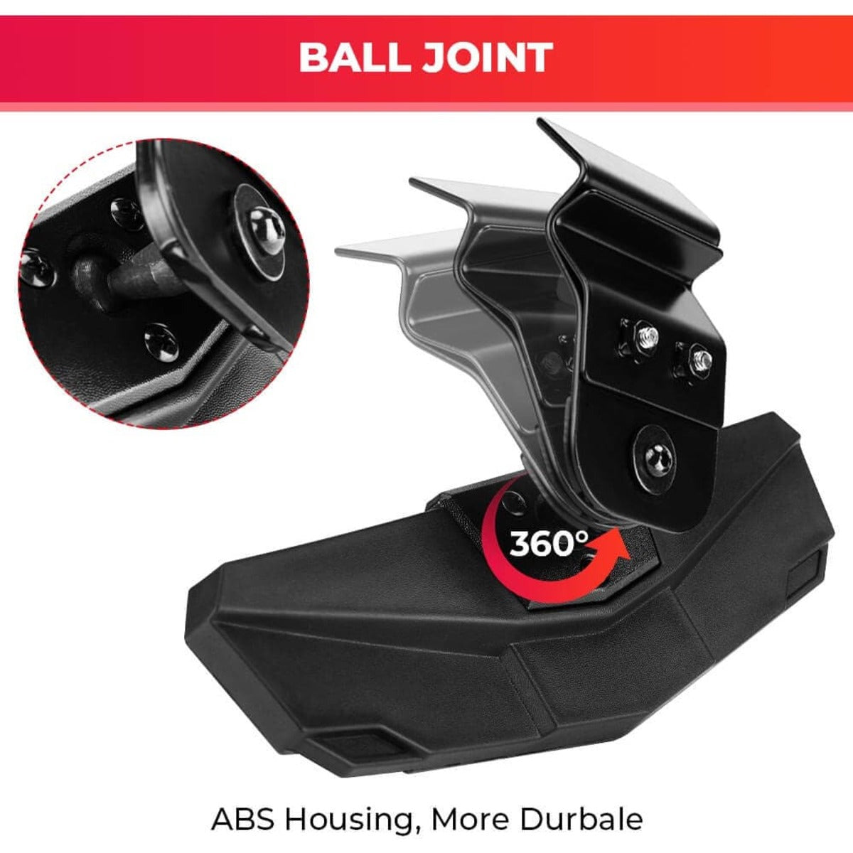 The UTV rearview mirror adopts a ball joint, which can rotate 360 degrees for helping you adjust to a better angle.