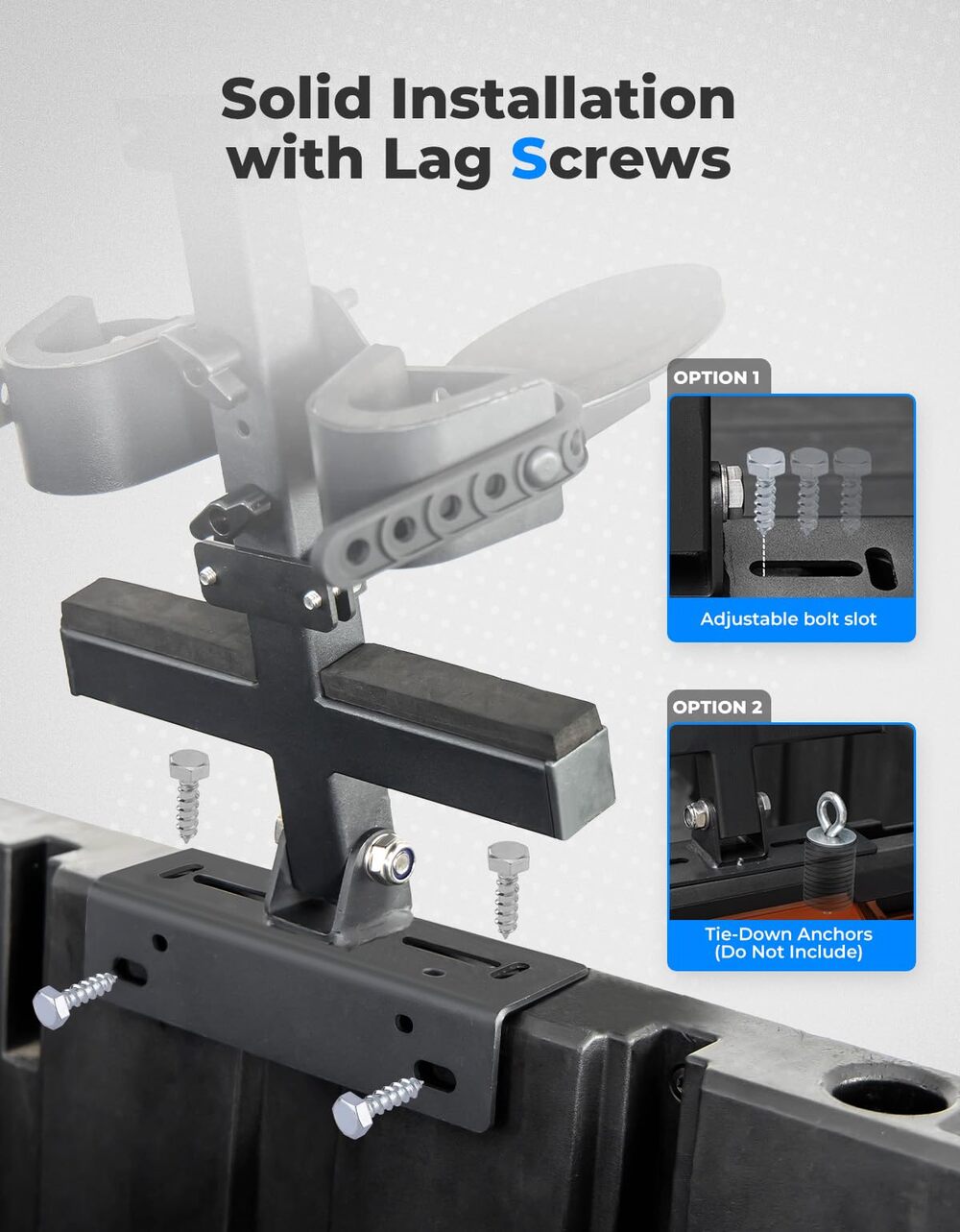 Lock the rack with tie-down anchors (NOT included). The top and side bolt placements may not match the UTV's holes, just drill extra holes to lock it.