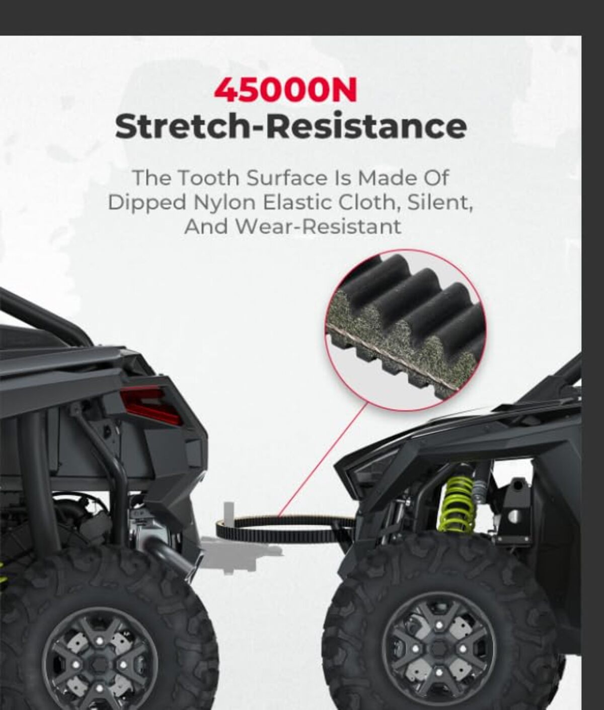 The inner elastic nylon fabric of our drive belt ensures it can withstand high-strength tension. As the vehicle travels at variable speeds, this belt provides stable RPM, wears evenly, and reduces belt failure. Rest assured, it offers the performance and durability you need, even in the most demanding off-road conditions.