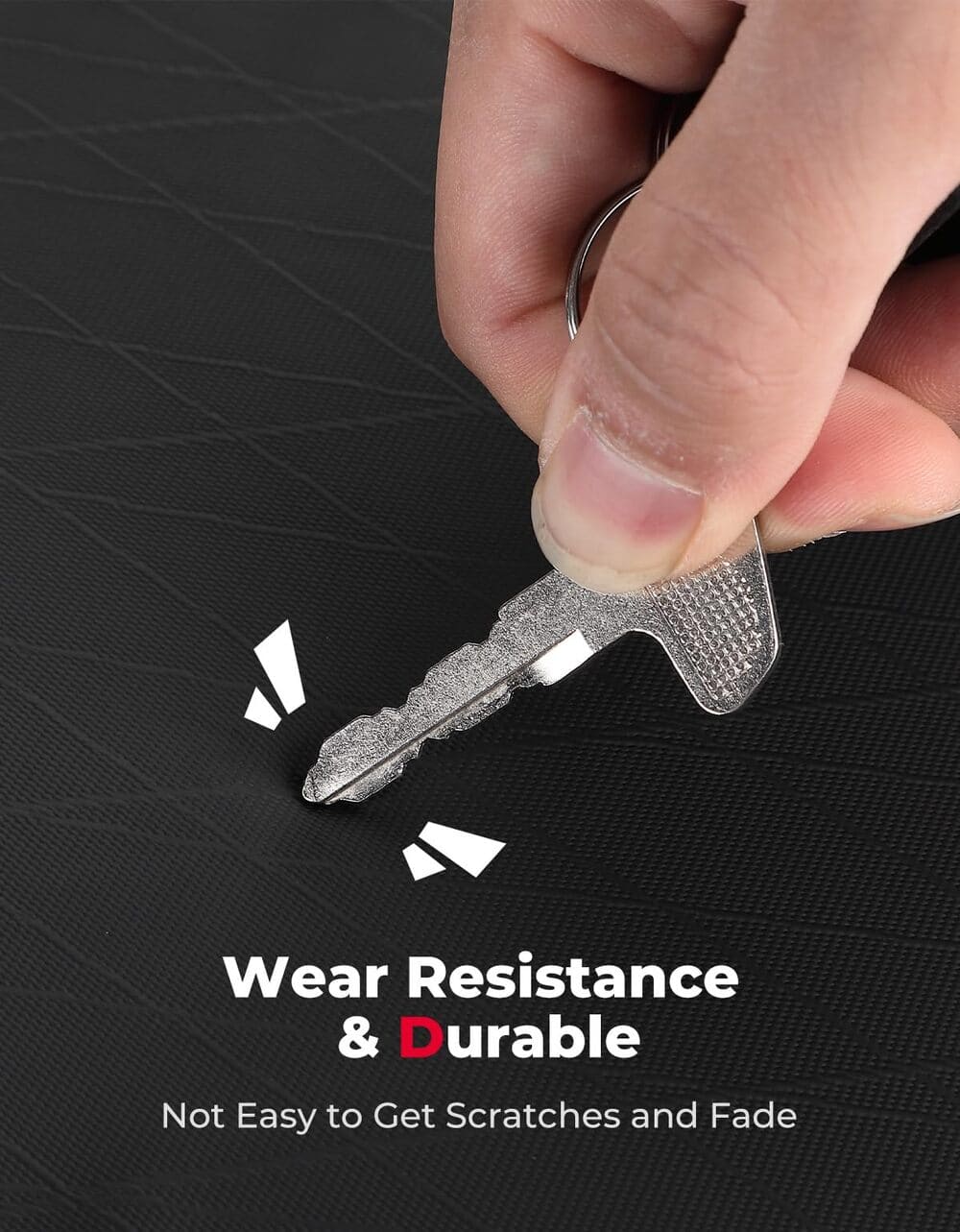 The diamond-grid pattern on our UTV Armrest Safe adds a fresh and sleek look. The protective film coating prevents scratches, wear, tear, and dust, making it perfect for rough off-road adventures. Additionally, the water-resistant surface coating ensures your belongings stay dry even in wet conditions.