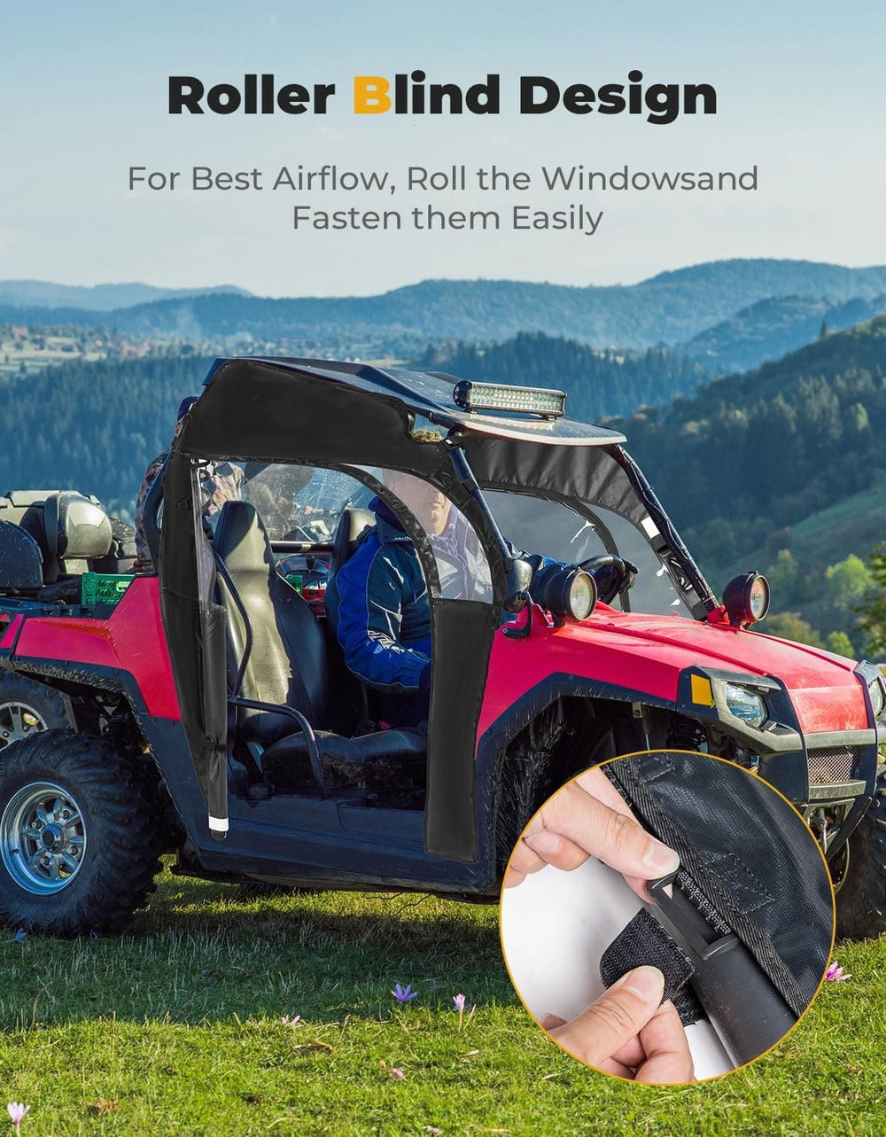 Our UTV soft cab enclosure set includes easily accessible zippered windows and reflective strips for nighttime safety. The design also features convenient zipper pulls on both sides for effortless entry and exit from your vehicle.