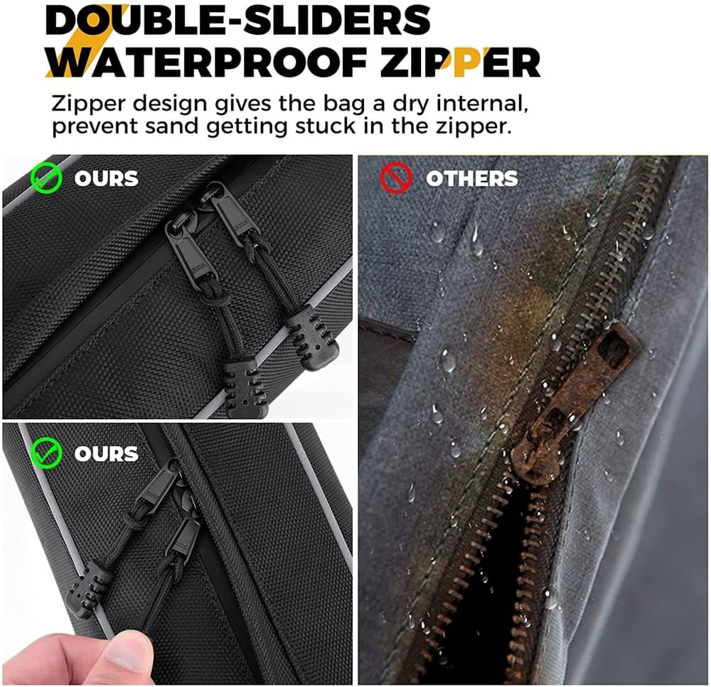 Rear cargo storage bag have 2 reflective strips on the side of the bag so that zipper position of the tool bag can be seen in the dark.