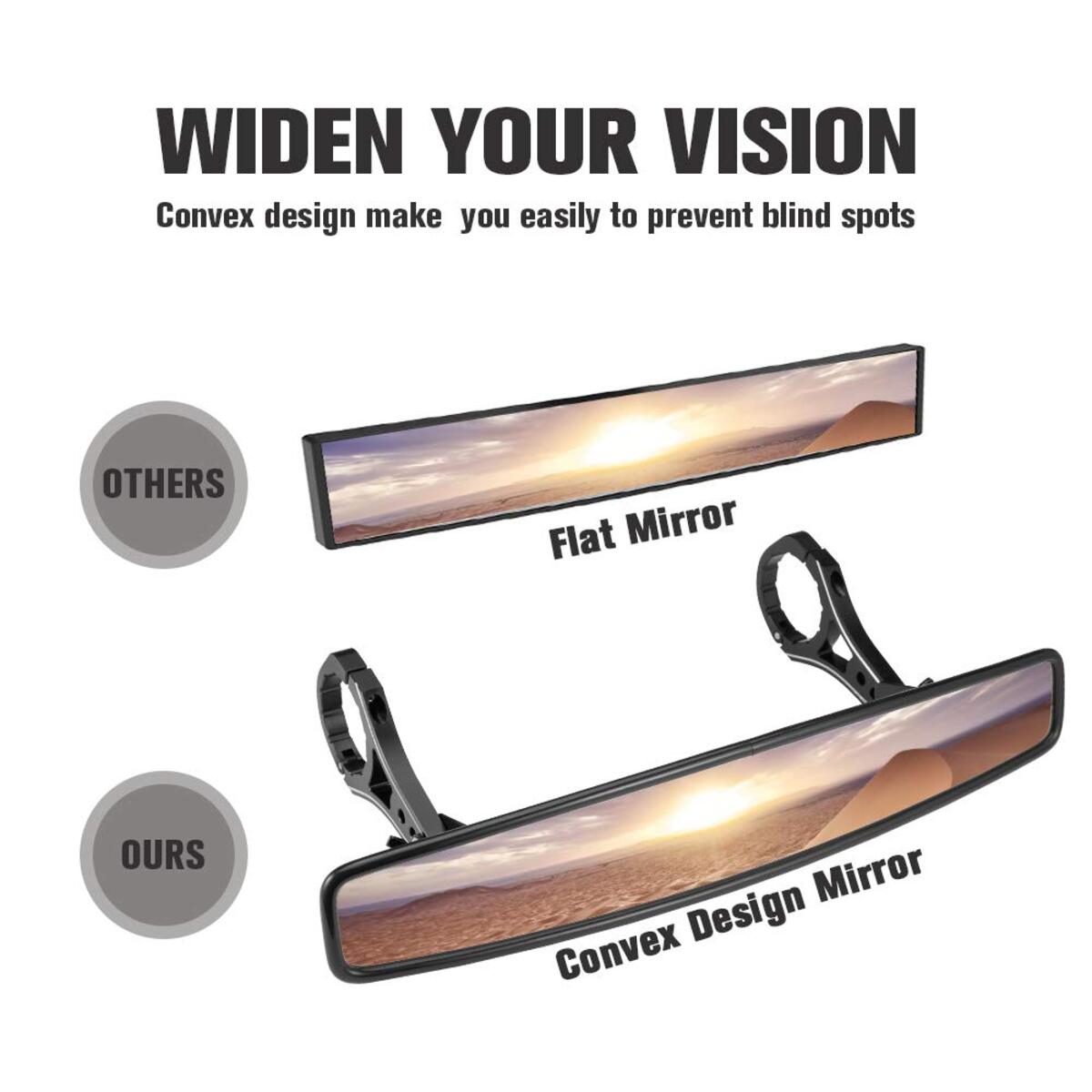 15" length of convex utv rear view mirror, provides a super wide field of vision for you to easily to prevent blind spots and some traffic accidents, which can improve your safety greatly.