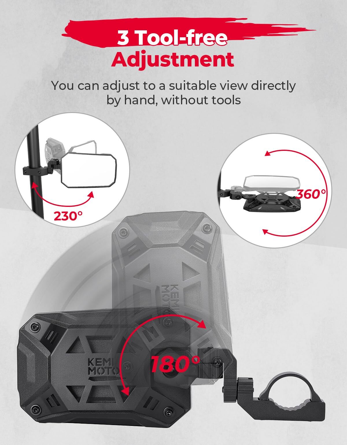 With our utv side view mirror, adjusting the angle and position is a breeze. You can easily achieve your desired settings without requiring any tools. This also avoids repeated installation to achieve the appropriate angle. Save time and effort with hassle-free adjustments.