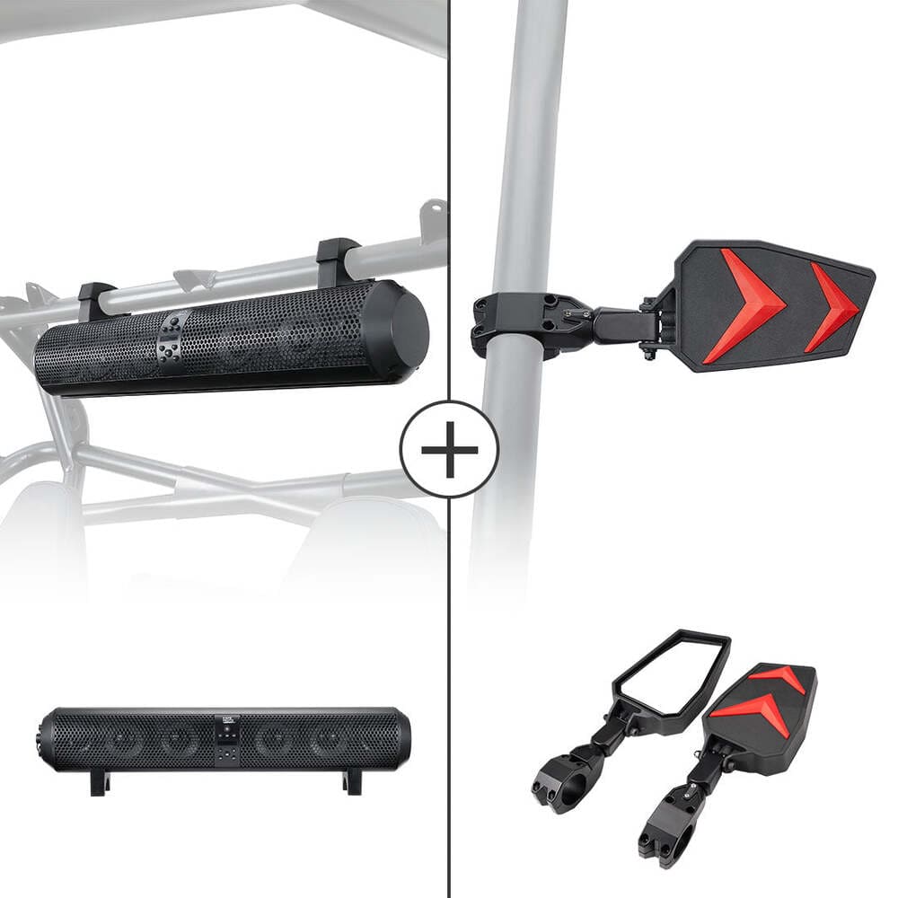 Kemimoto Polaris UTV Bluetooth Sound Bar & Side Rear View Mirrors 1.75"-2'' Roll Bar