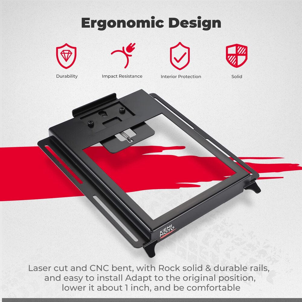 With KEMIMOTO Seat Lowering Base, be used on either the passenger or driver-side seat, get more headroom, and stop hitting your knees on the steering wheel. We drop you a 1" seat height, which conforms to ergonomics and gives you a comfortable sitting space. NOTE: This product can't slide Front to Back Adjustability