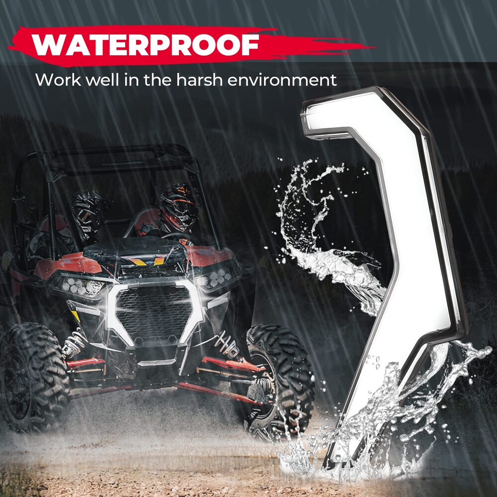 Kemimoto Polaris turn signal fang lights are a game-changer for your driving experience. They're designed to help you spot hazards sooner, giving you extra time to react and stay safe. These lights are not just about safety; they make your ride look cool and get you noticed. Worried about bad weather? No need! These lights are waterproof, so rain or river crossings won't stop them from shining bright. Built tough with an ABS back shell and polycarbonate headlights, these lights can handle scratches and rough conditions without losing their shine. Make your vehicle stand out and drive with confidence. Don’t miss out—grab your Kemimoto Polaris turn signal fang lights now and transform your ride!