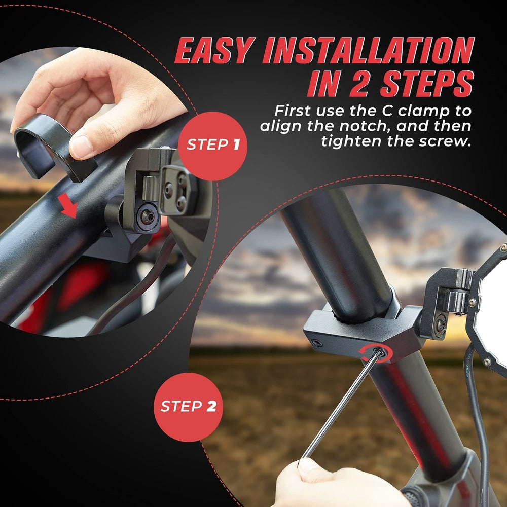 Just need two steps and few minutes to install. The anti-slip teeth clamps design make the UTV lighted side view mirrors be installed without rubber pads, just simply tightened the screws. Perfectly fits the roll cage without shaking. Easy to install and keep the mirror stable at all times.