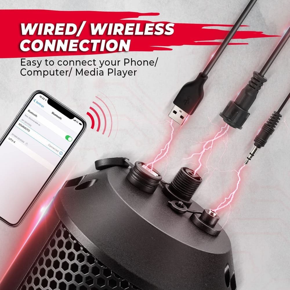 Plus, you can connect your phone or tablet to the Kemimoto universal UTV soundbar to play music directly from the device wirelessly.