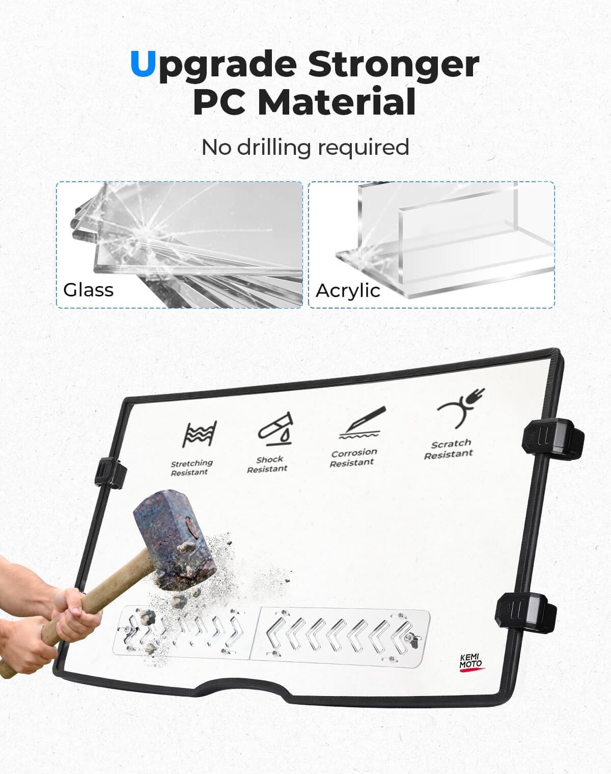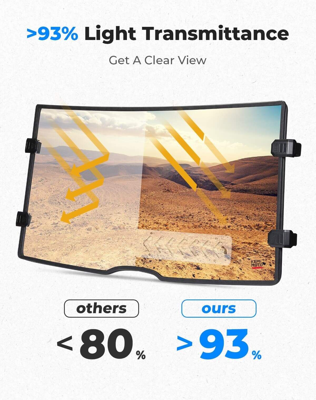 The Tracker 800SX windshield, crafted from 1/5" thick environmentally friendly hardened PC material, ensures 93% light transmission while softening radiation. It resists stretching, shocks, corrosion, and scratches, making it easy to clean and highly durable. Enjoy a clear view of the road ahead while shielding occupants from wind, rain, and debris.